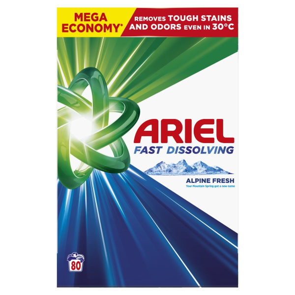 Detergent za pranje perila, Mountain Spring, Ariel, 80 pranj, 4,4 kg