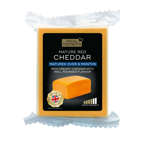 Sir Cheddar, rdeč in staran, Special Moments, pakirano, 200 g