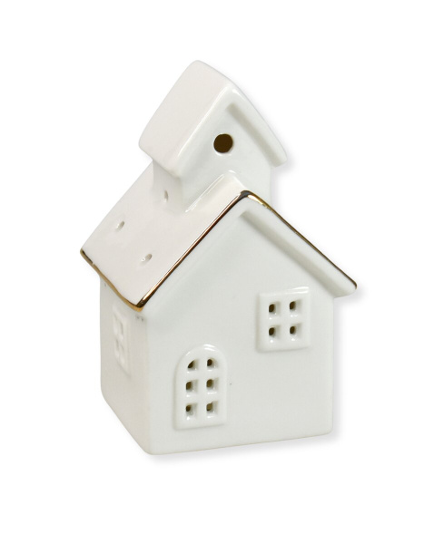 Držalo za svečo, novoletna hiška, bela IV, 6,5 x 10,8 x 6,5 cm