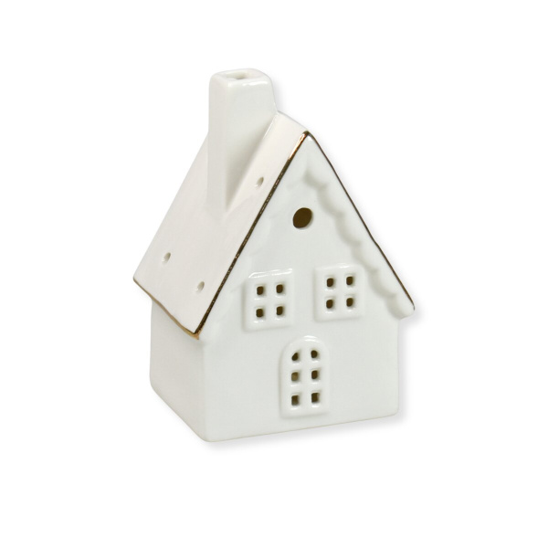 Držalo za svečo, novoletna hiška, bela III, 6,5 x 10,8 x 6,5 cm