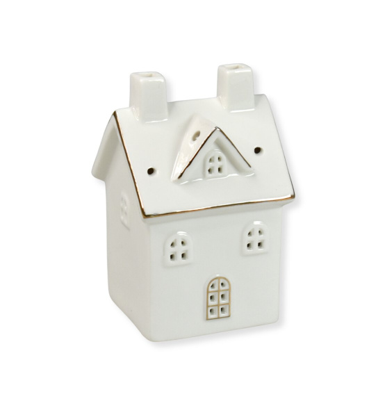 Držalo za svečo, novoletna hiška, bela II, 6,5 x 10,8 x 6,5 cm