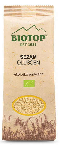 Luščen SEZAM* 100 %. , nadzorno mesto: SI-EKO-001. Kmetijstvo EU/izven EU. *iz kontrolirane ekološke pridelave.