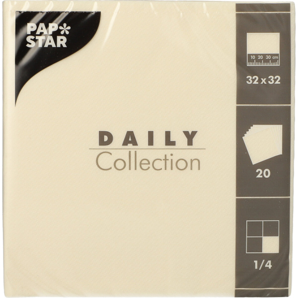 Serviete Daily Collection, 1/4 zložene, šampanjec, Papstar, 32 x 32 cm, 20/1