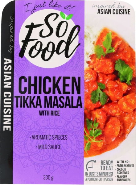 Piščanec v omaki tikka masala z rižem, So Food, 330 g