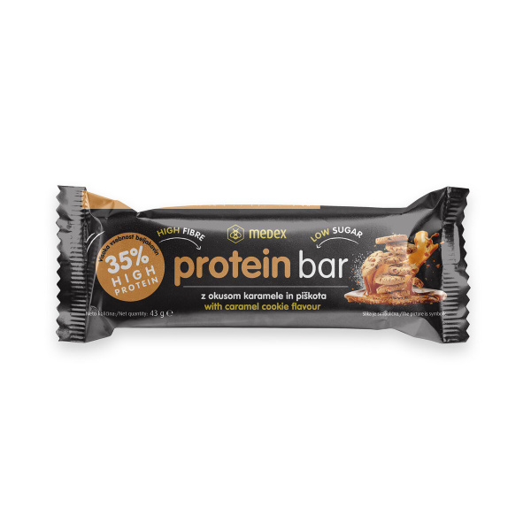 Beljakovinska ploščica, karamela in piškot, Medex, 43 g