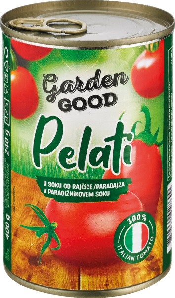 Olupljeni paradižnik 60 %, paradižnikov sok, sredstvo zauravnavanje kislosti: citronska kislina.