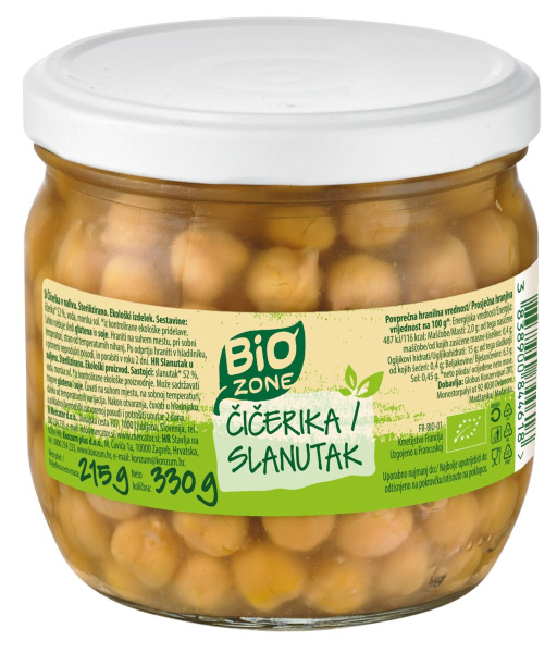 čičerika* 52 %, voda, morska sol. *iz kontrolirane ekološke pridelave. Lahko vsebuje sledi GLUTENA in SOJE.