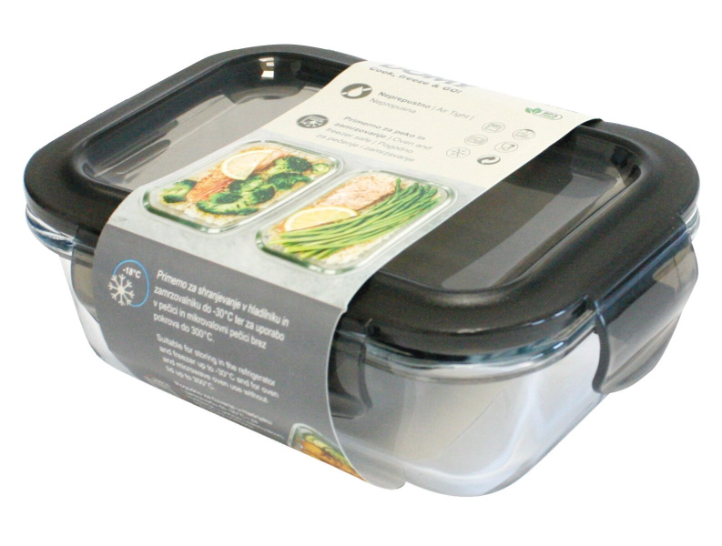 Steklena posodica za shranjevanje, pravokotna, Domy, 370 ml