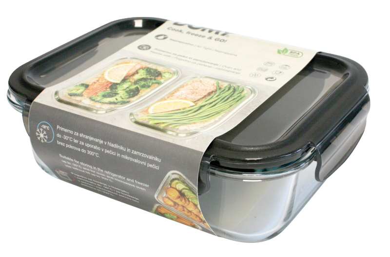Steklena posodica za shranjevanje, pravokotna, Domy, 1520 ml