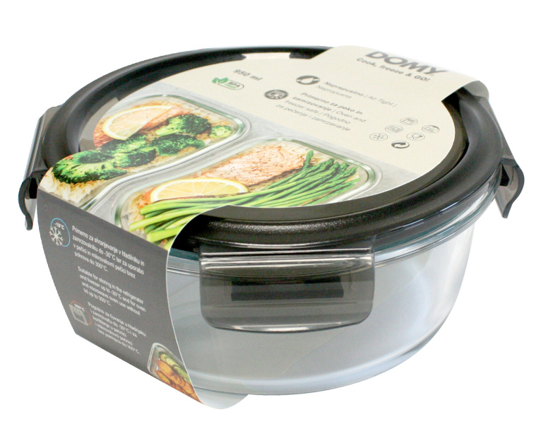 Steklena posodica za shranjevanje, okrogla, Domy, 950 ml