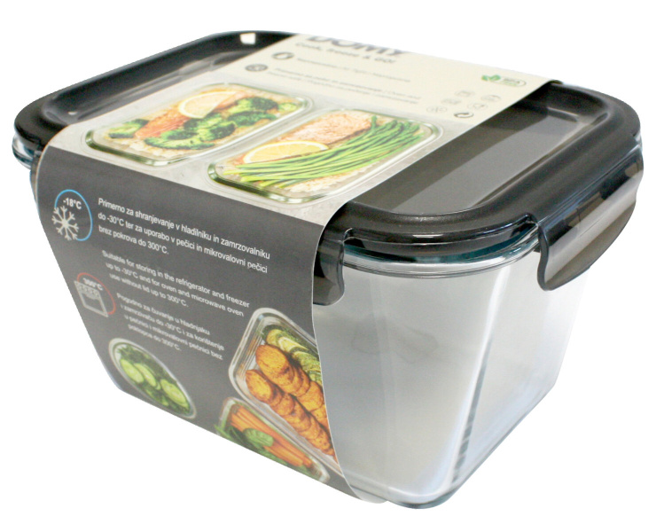 Steklena posodica za shranjevanje, globoka, pravokotna, Domy, 2440 ml