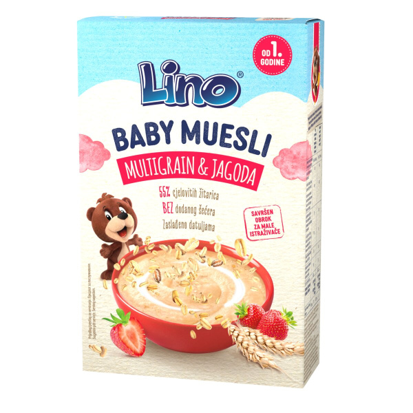 Muesli, večzrnati z jagodo, Lino baby, 150 g