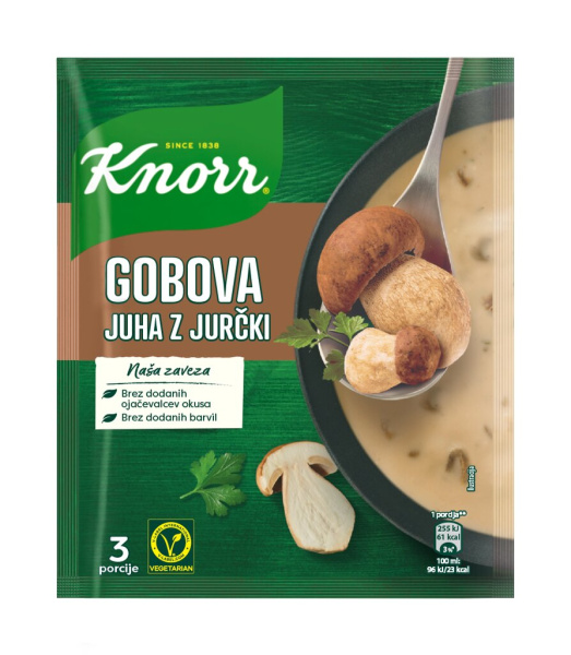PŠENIČNA moka, škrob, jodirana sol (sol, kalijev jodat), palmina maščoba, jurčki 4,7%, krompirjevi kosmiči (krompir, aroma), sladkor, izvleček kvasa, maltodekstrin, aroma, glukozni sirup, sol, MLEČNE beljakovine, hidrolizirane koruzne beljakovine, limonin sok v prahu (sladkor, limonin sok, sol), peteršilj 0,2%, karamelizirani sladkorni sirup, začimbe (kurkuma, korenina peteršilja v prahu)
