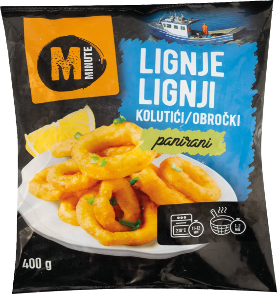 Panirani lignji, obročki, Minute, zamrznjeno, 400 g