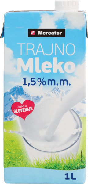 Mleko, 1,5 % m.m., Mercator, 1 l