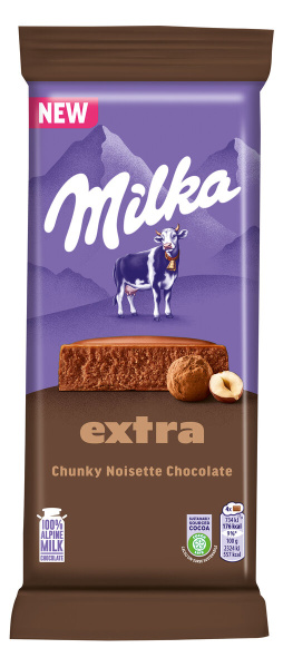 sladkor, kakavovo maslo, LEŠNIKOVA pasta (13%), kakavova masa, posneto MLEKO v prahu, sirotka v prahu (iz MLEKA), MLEČNA maščoba, emulgator (SOJINI lecitini), aroma. Mlečna čokolada vsebuje: kakavovi deli najmanj 33%. LAHKO VSEBUJE DRUGE OREŠČKE IN PŠENICO.