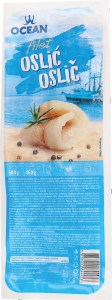 Argentinski OSLIČ (Merluccius hubbsi), glazura (voda). Lahko vsebuje sledi GLUTENA, MLEKA, RAKOV in MEHKUŽCEV.