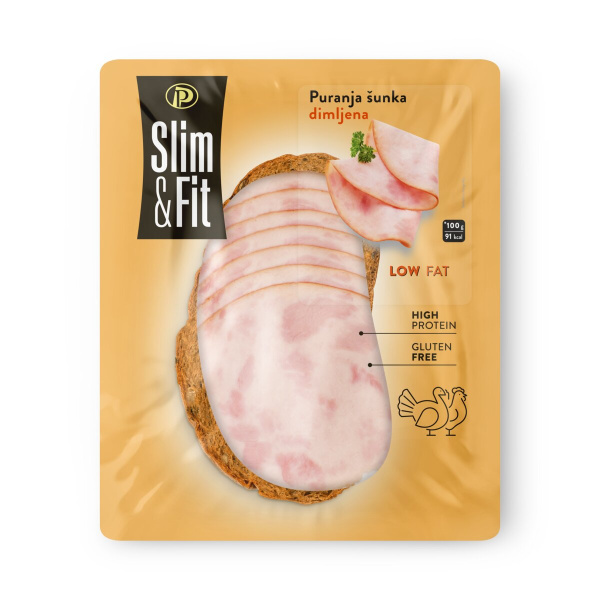 Narezek, dimljena puranja šunka Mega, Slim & Fit, pakirano, 100 g