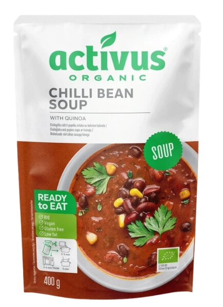 Bio veganska fižolova juha s čilijem in kvinojo, Activus, 400 g