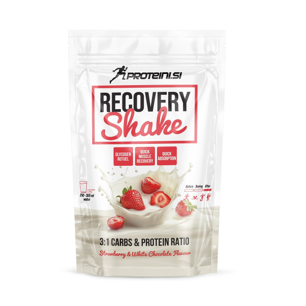 Proteini Recovery shake, jagoda in bela čokolada, Proteini.si, 320 g