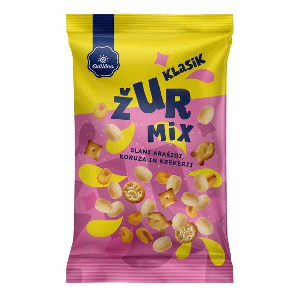 48 % arašidi, 26 % koruza, 20 % krekerji (pšenična moka, nehidrogenirana kokosova mast, repično olje, jodirana sol, sladkor, sredstvi za vzhajanje (amonijev in natrijev bikarbonat), glukozni sirup, sladni ekstrakt, emulgator: E-472e, sredstvo za vzhajanje: natrijev pirofosfat, sojin lecitin), sončnično olje, jodirana sol.