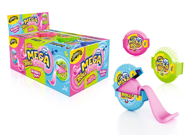 Žvečilni gumi Mega roll, jagoda, zeleno jabolko ali modra malina, Johny Bee, 40 g