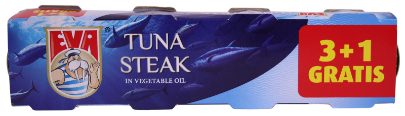 Tuna steak v rastlinskem olju, Eva, 80 g, 3 + 1 gratis