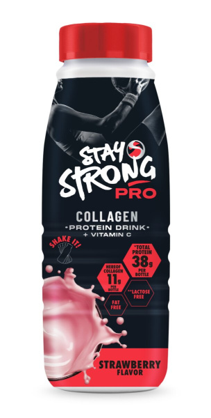 Mlečni napitek s proteini in kolagenom, jagoda, Stay Strong, 500 ml