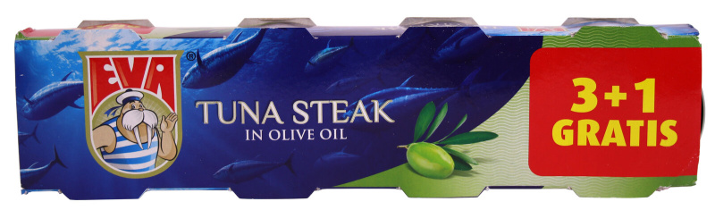 Tuna steak v oljčnem olju, Eva, 80 g, 3+1 gratis