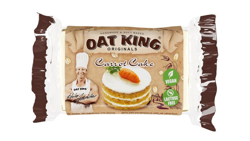Ovseni kosmiči 34%, čokoladna glazura 21% (palmovo olje), voda, dekstroza, fruktoza, emulgator E473 (saharozni estri maščobnih kislin), sol, naravna aroma, regulator kislosti E575 (glukono delta-lakton); konzervans E202 (kalijev sorbat), zlati sirup, rastlinska margarina (palmovo in repično olje, voda, sol, naravna aroma), demerara sladkor, orehi 3%, korenje 2%, cimet, aroma. Lahko vsebuje sledi arašidov in soje.
