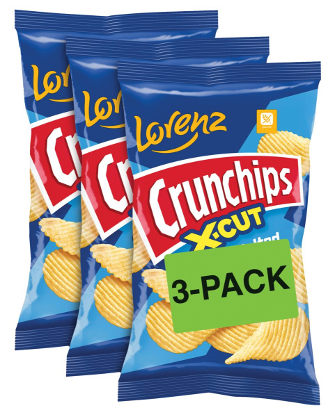 Čips s soljo, Crunchips X-cut, 3 x 75 g