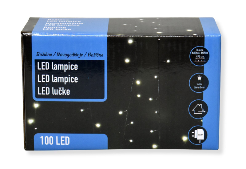 LED lučke za smreko, bela svetloba, 495 cm, 100 lučk