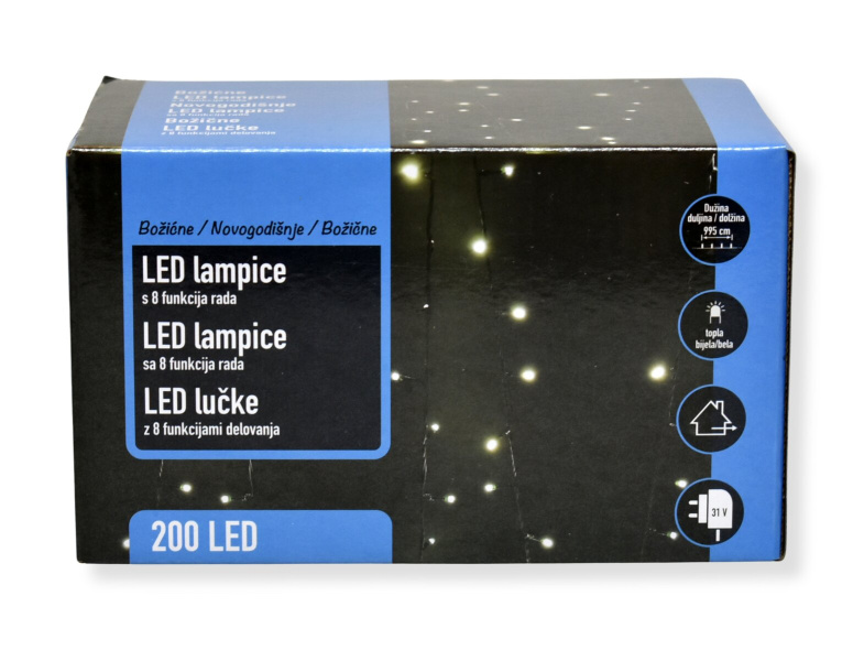 LED lučke za smreko, topla bela svetloba, več nastavitev, 995 cm, 200 lučk