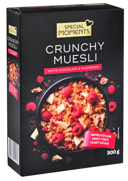 Hrustljavi musli, bela čokolada z malino, Special Moments, 300 g