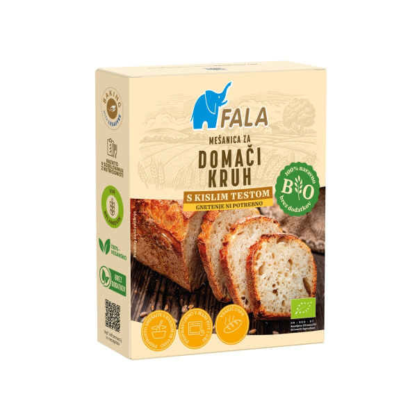 PŠENIČNA moka T 550*, OVSENI kosmiči*, KORUZNI zdrob*, PŠENIČNO kislo testo*, sladkor*, GLUTEN (PŠENICA)*, mleta brezmastna semena zlatega lana*, jodirana sol, psilij*, ekstrakt kvasa, acerola v prahu*, začimba*. *-ekološke surovine. Lahko vsebuje sledove SOJE, JAJC, MLEKA, SEZAMA in OREHA.