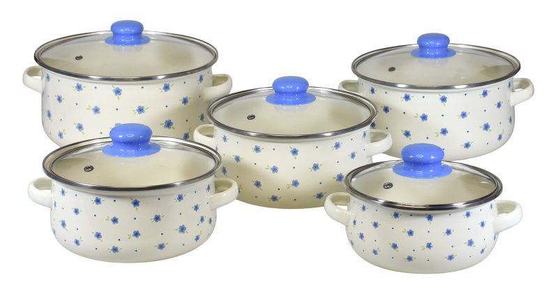 Set emajliranih loncev s steklenim pokrovom, 5/1