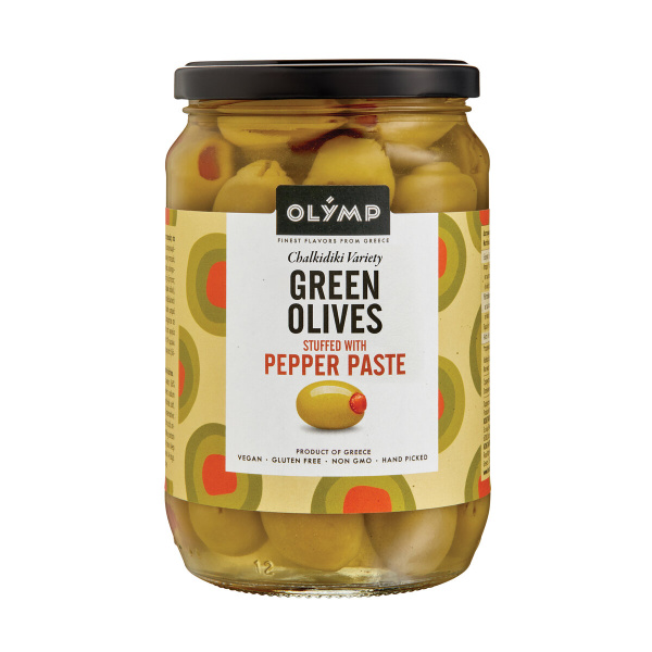 Zelene olive polnjene s papriko, Olymp, 400 g