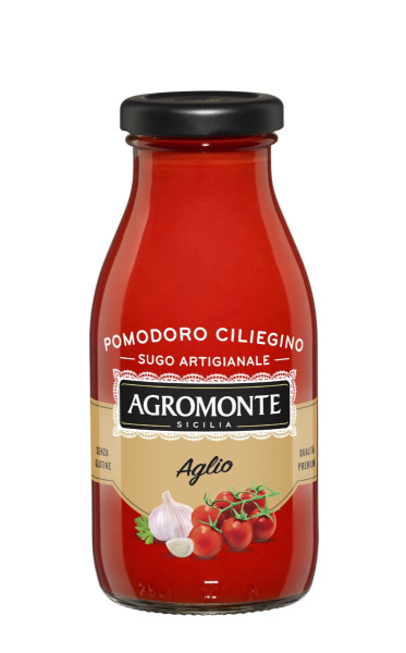 Češnjev paradižnik (96,5 %), ekstra deviško oljčno olje, česen (0,6 %), korenje, čebula, sol, bazilika, ZELENA (0,1 %), sladkor. Poreklo paradižnika: Italija.