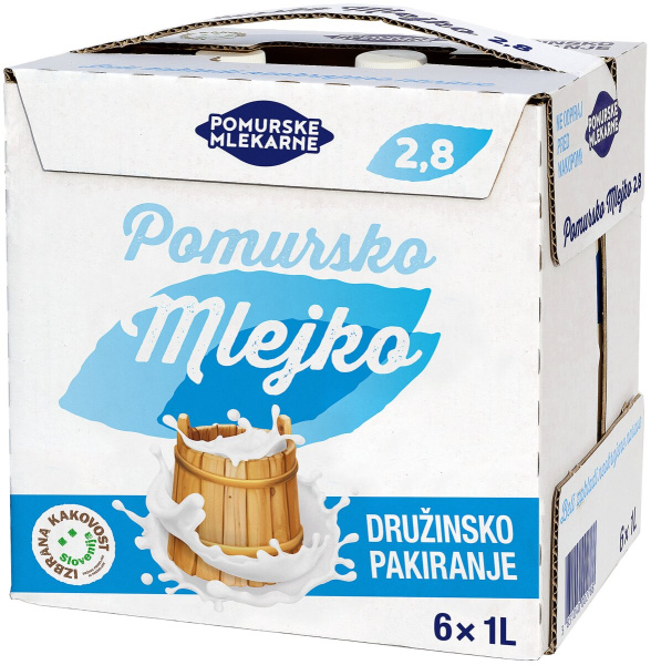 Trajno polnomastno mleko, 2,8 % m.m., Pomurske mlekarne, 6 x 1 l