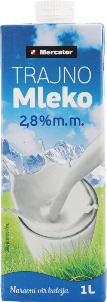 Trajno mleko, 2,8 % m.m., Mercator, 1 l