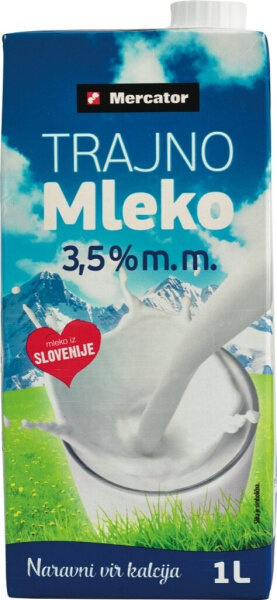 Trajno polnomastno mleko, 3,5 % m.m., Mercator, 1 l