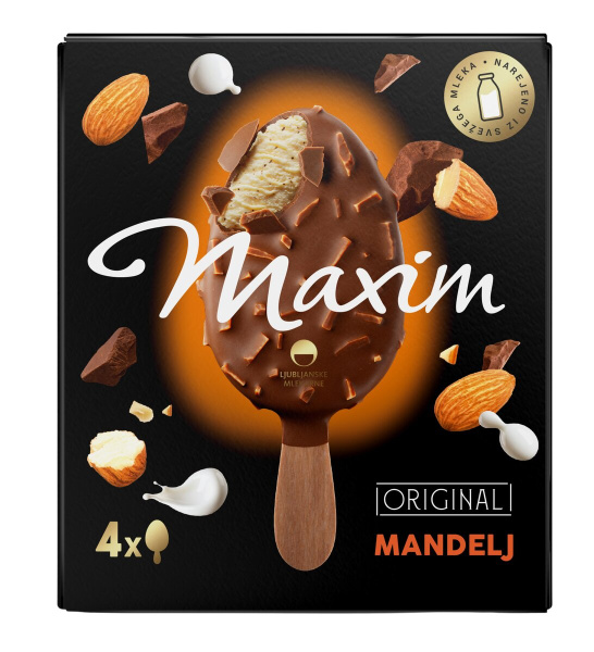 Sladoled na palčki, mandelj, Maxim Premium, 4 x 100 ml