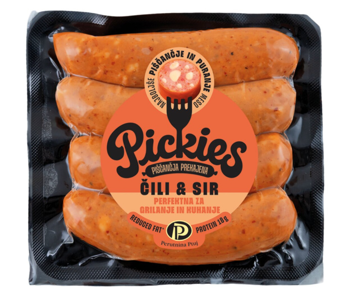 Piščančja prekajena klobasica s sirom in čilijem, Pickies, pakirana, 210 g