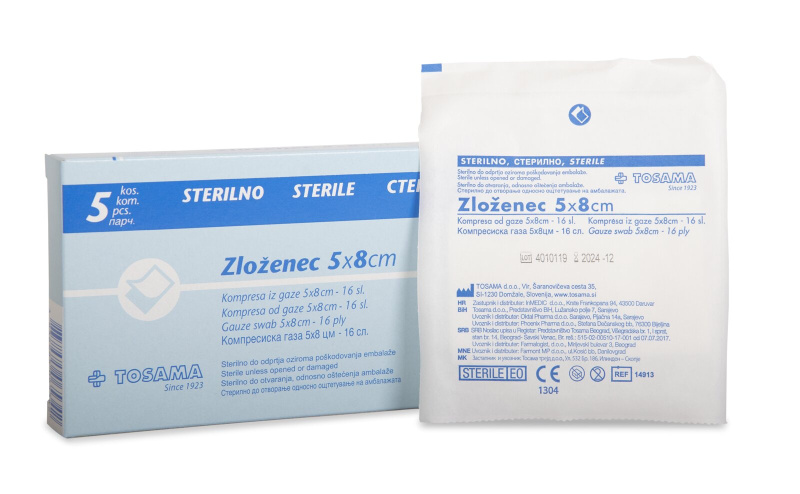 Sterilna gaza Tosama, 5x8cm, 5 kosov