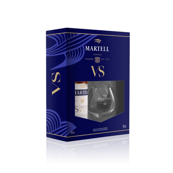 Konjak Martell V.S.O., 0,7 l + 2 kozarca