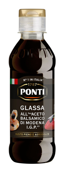 Balzamični kis iz Modene 38 % (vinski kis, koncentriran grozdni mošt, kuhan mošt, barvilo: karamel, antioksidant: žveplov dioksid), vinski kis, barvilo: karamel, modificiran koruzni škrob, gostilo: ksantan gumi.