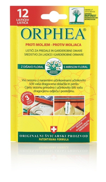 Insekticid lističi proti tekstilnim moljem z dišavo Floral, Orphea, 12 kosov