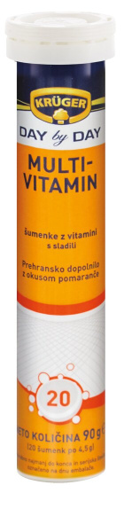Šumeče tablete, multi-vitamin z okusom pomaranče s sladili, Kruger, 90 g