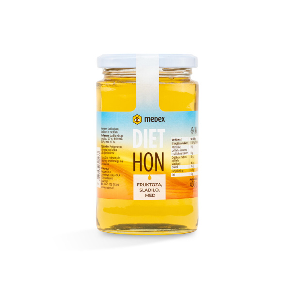 SLADILO-SORBITOL, FRUKTOZA, MED 13 %. BREZ KONZERVANSOV, AROM IN BARVIL. IZDELEK JE PRIMEREN TUDI ZA DIETNO PREHRANO PRI SLADKORNI BOLEZNI. DIABETIKI NAJ SE PRED UŽIVANJEM IZDELKA POSVETUJEJO Z ZDRAVNIKOM. PREKOMERNO UŽIVANJE SORBITOLA IMA LAHKO ODVAJALNI UČINEK.