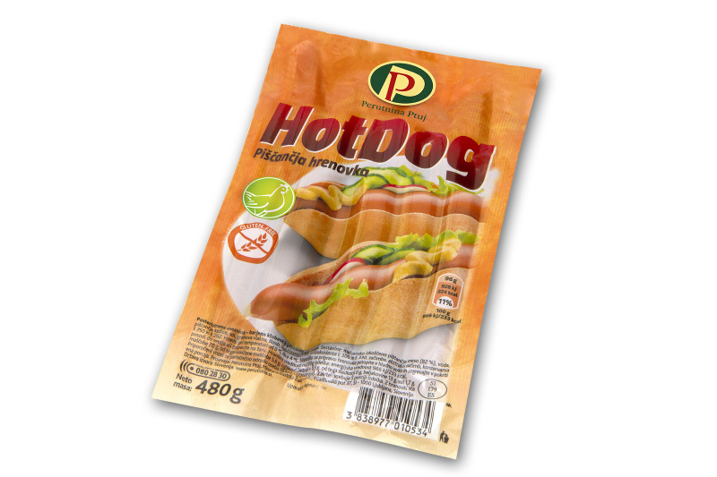 Piščančje hrenovke Hot Dog, Perutnina Ptuj, pakirano, 480 g
